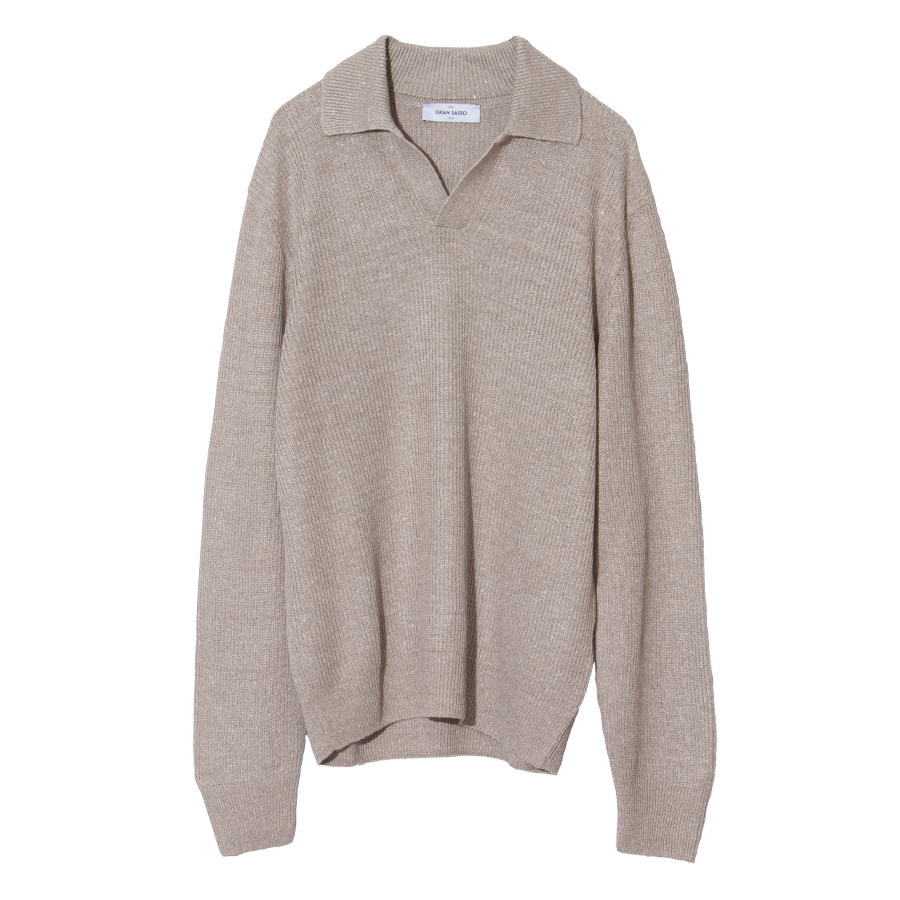 GRAN SASSO(グランサッソ)からリネンコットン 畦編み 8ゲージ スキッパーポロの新色、ベージュが入荷しました。